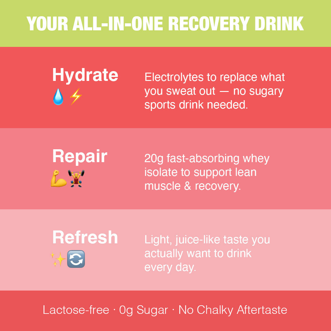 Combines two recovery essentials in one: protein and electrolytes.