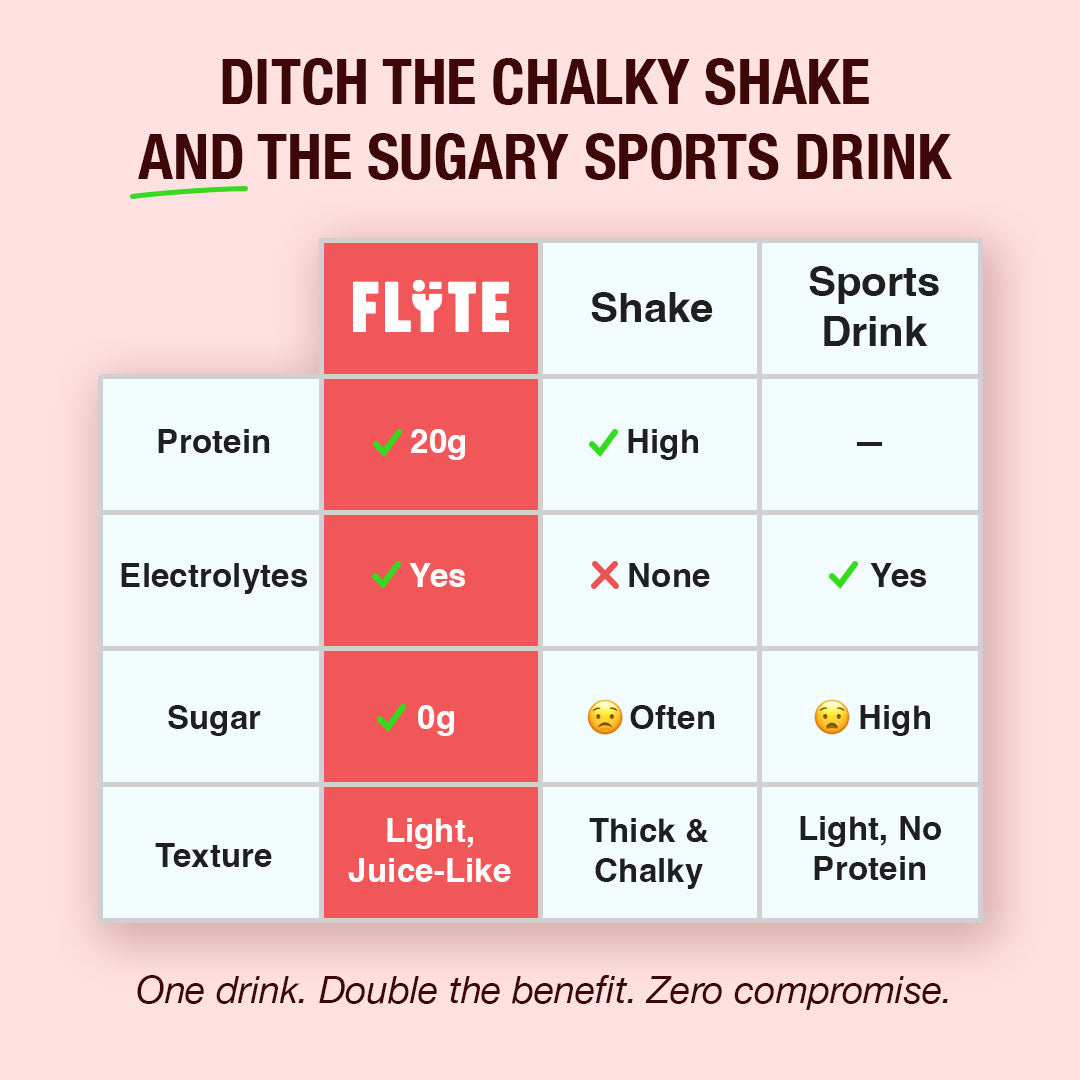 We made FLYTE Protein Hydration Mix as a better alternative to the thick milky protein shakes, and overly sweetened, artificial clear wheys.